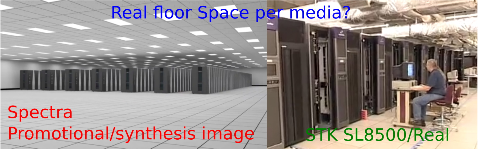- IBM, Spectra libraries can’t be placed flush against a wall or between two walls to be installed side by side (from the inside), with only 10 cm clearance, like the SL8500: up to 10 units for a total of 100,000 media, have not 4 floors with 2 elevators, a robot that can be taken out by unscrewing 2 screws and shipped easely,... (Quantum neither):